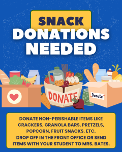 Did you know that Mrs. Bates, our school counselor at SES, provide snacks to students who were not able to bring one from home. Please help us support her efforts to make sure that all students can have something during classroom snack time by donating non-perishable snack items. Purchase items and drop them at the front office, or order online from Mrs. Bates’ Amazon wish list and have them shipped to the school!
